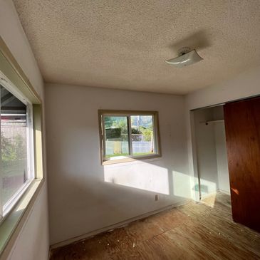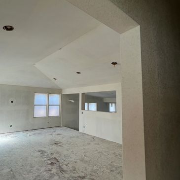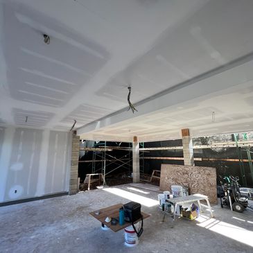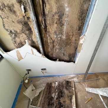 Demo water damage area, dispose debris, install drywall and match existing drywall finish.